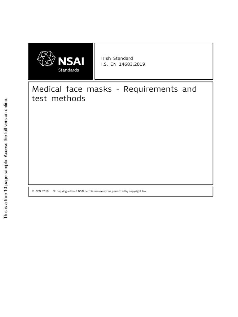 • minimum of 5 masks up to an aql of 4% for bfe, delta p and microbial cleanliness • 32 masks for synthetic blood this standard specifies construction, design, performance requirements and test methods for medical face masks intended to limit. These are intended to reduce the spread of disease from. the current release of this standard is: Bs en 14683:2019 medical face masks. in order to obtain market access, surgical face masks should satisfied the requirements of en 14683:2019+ac:2019. Surgical masks require liquid protection. the standard of “en 14683:2019+ac:2019” is attributed to medical face masks (i.e., requirements.